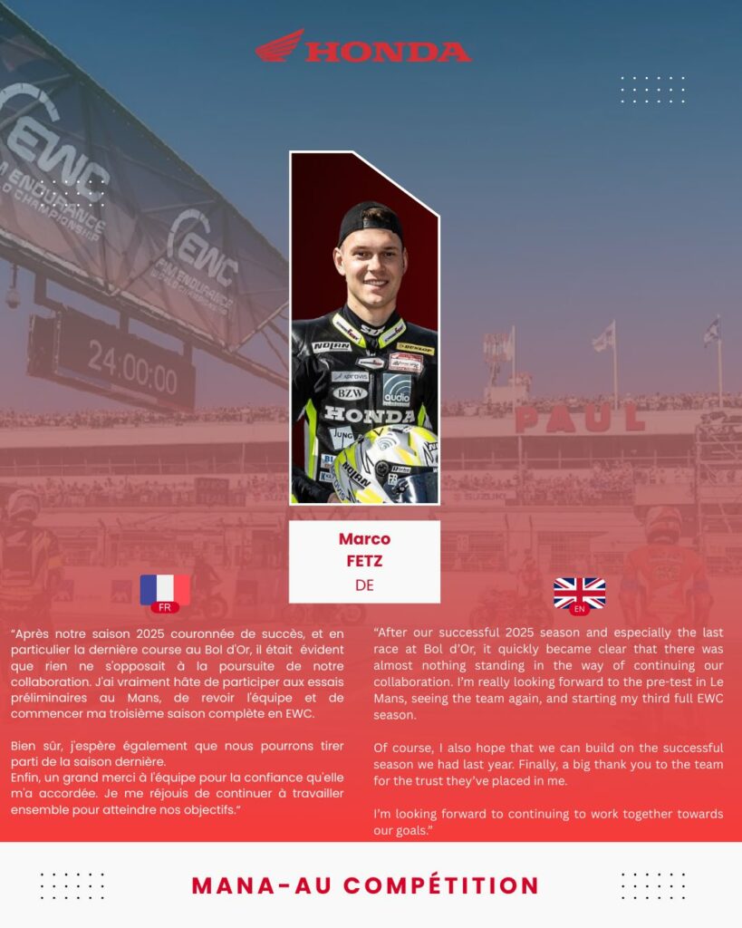 4 équipages Honda engagés pour les 24h Motos 2025 en catégorie #FormulaEWC